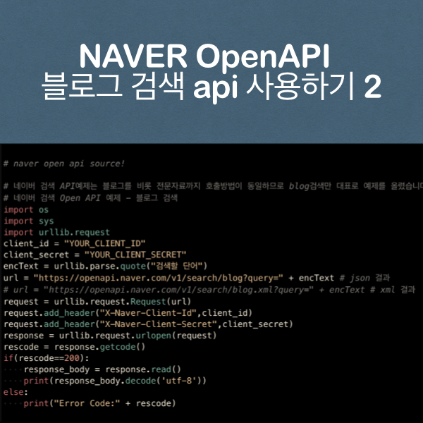 | python으로 네이버 블로그 검색 api 활용하기! (2) | 2020.08.30 |