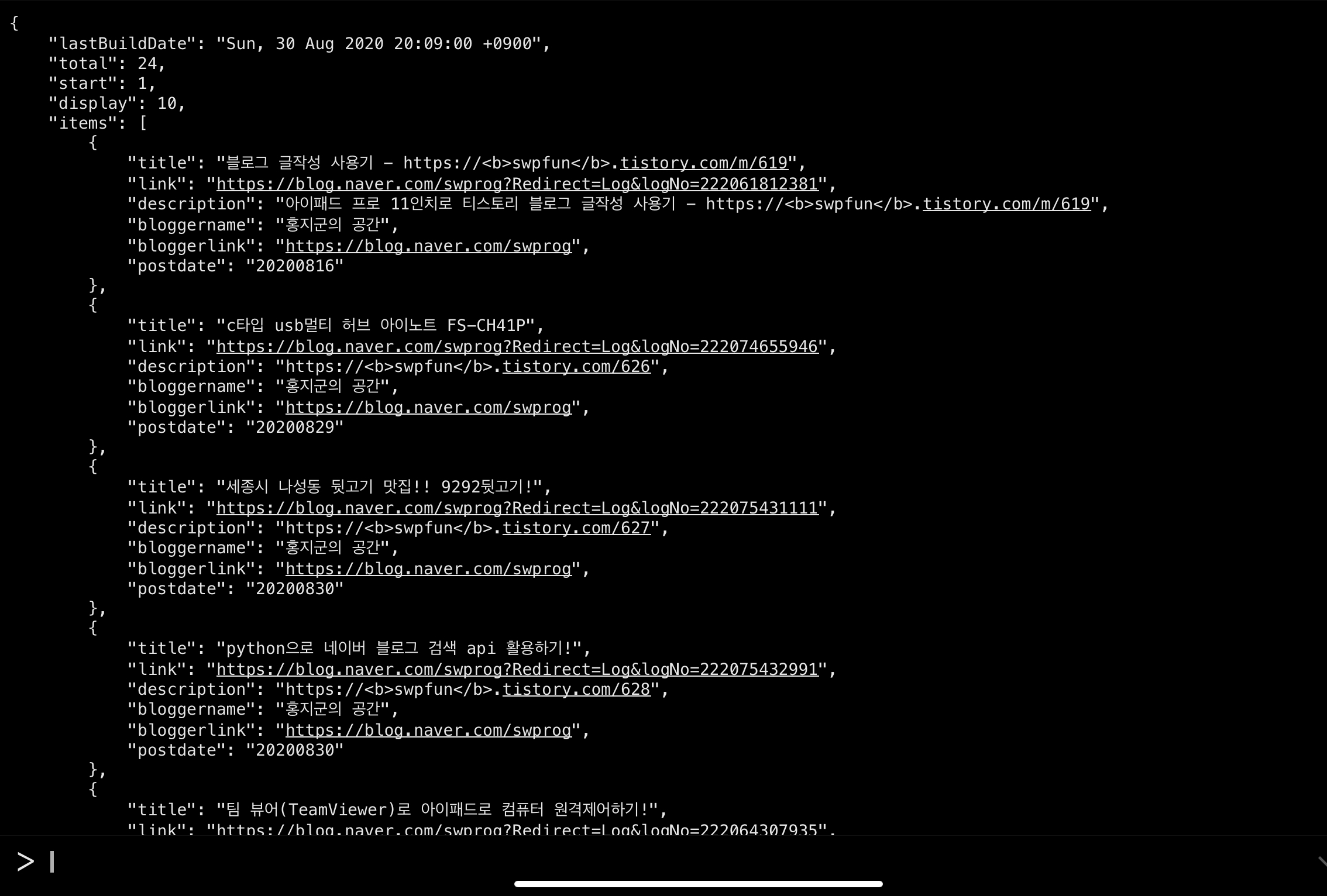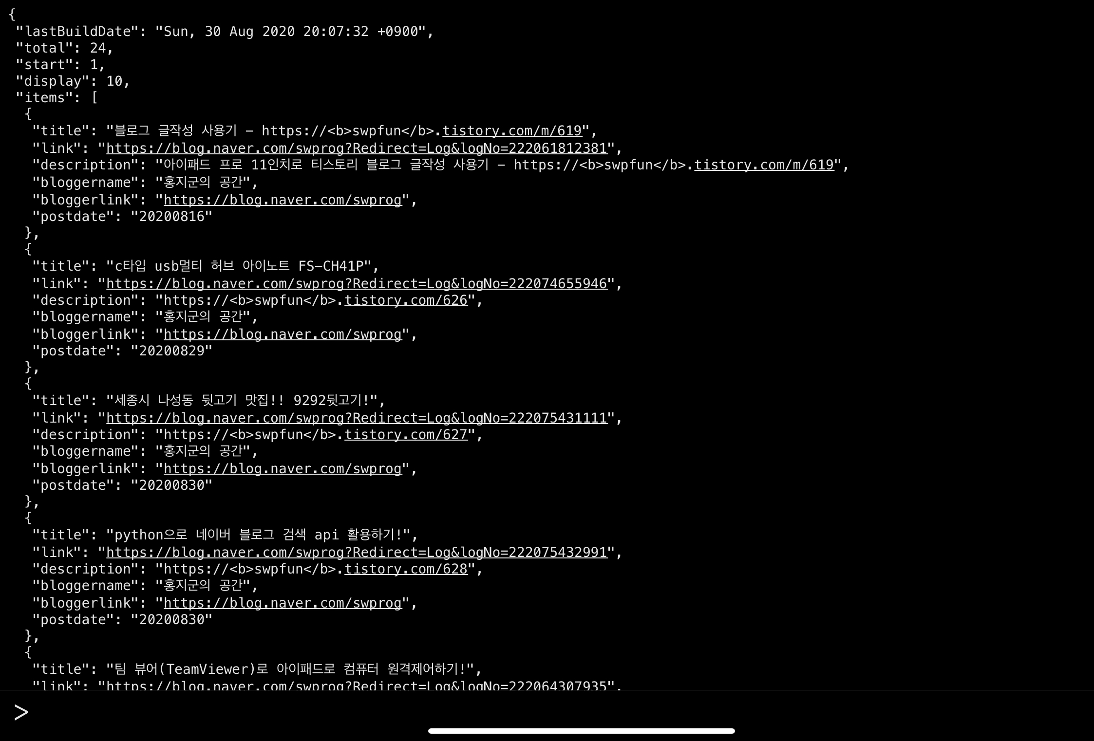 2020/08/30 - [programming/Python] - python으로 네이버 블로그 검색 api 활용하기!
