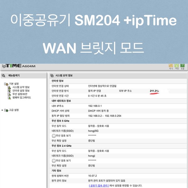 이중공유기(기가라이트 허브 SM204)+(IpTime 공유기) WAN 브릿지 모드 사용