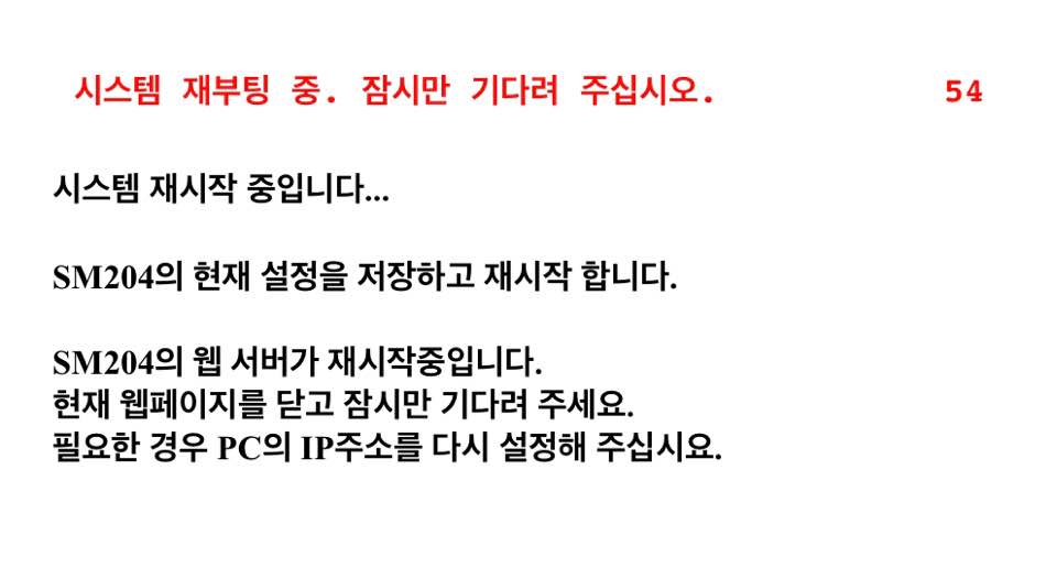 "리부팅"을 누르면 시스템 재부팅 중. 잠시만 기다려 주십시오. 하고 60초를 기다려주면됩니다.