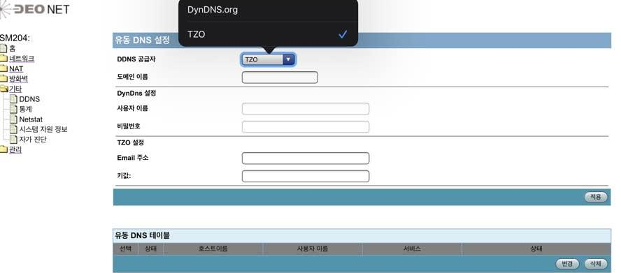 SM204모델을 사용하면서 DDNS서비스를 이용하려고 한다면 DynDNS.org와 TZO 2개의 DDNS 공급자를 선택할 수 있는데.. 문제는 DynDNS.org는 이미 DDNS서비스를 종료했고 TZO는 유료.. 따라서 SM204모델만으로는 DDNS 서비스를 이용할 수 없게됩니다.