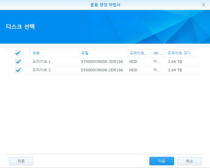 시놀로지 NAS 첫 볼륨 생성!! RAID구성!!
