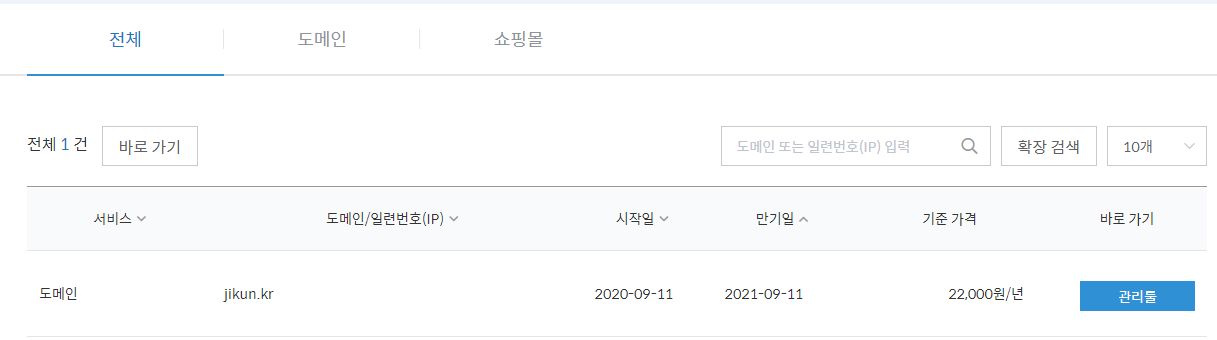 가비아(gabia.com)에서 도메인("jikun.kr")을 구매하고 NAS에 DNS Server로 접속하는 환경을 만들어 두었는데 메인으로 사용되는 도메인("www.jikun.kr")은 티스토리에 적용시키고 나머지 "blog.jikun.kr", "file.jikun.kr" 등등 하위 도메인은 시놀로지 NAS에 연결하여 사용중에 있습니다.