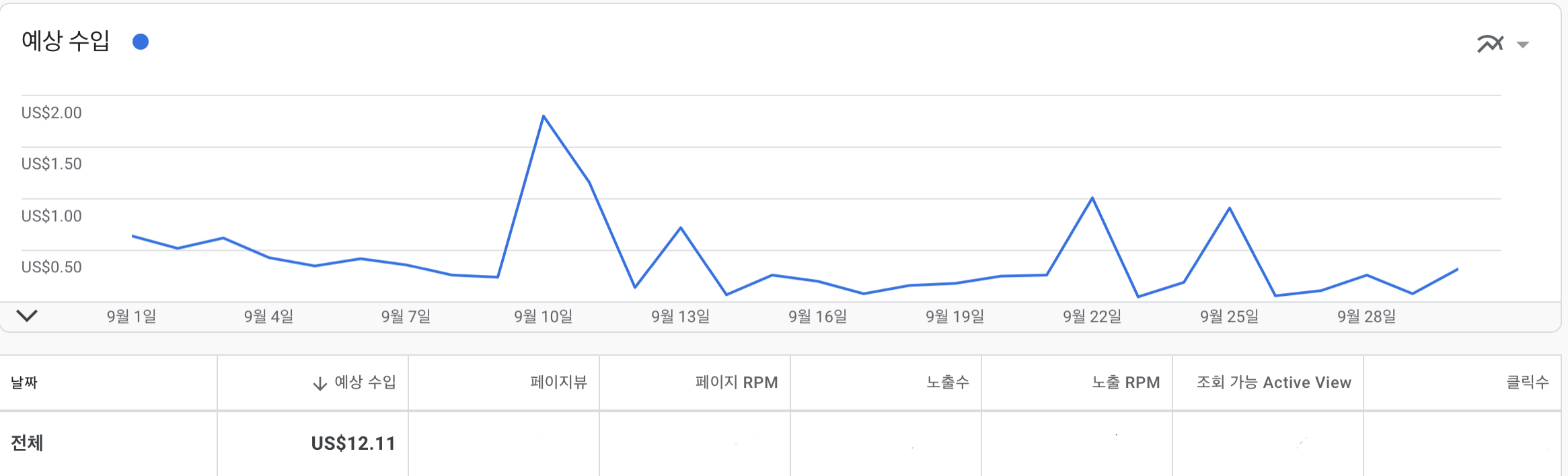 9월달의 애드센스 수익금은 12.11 달러!