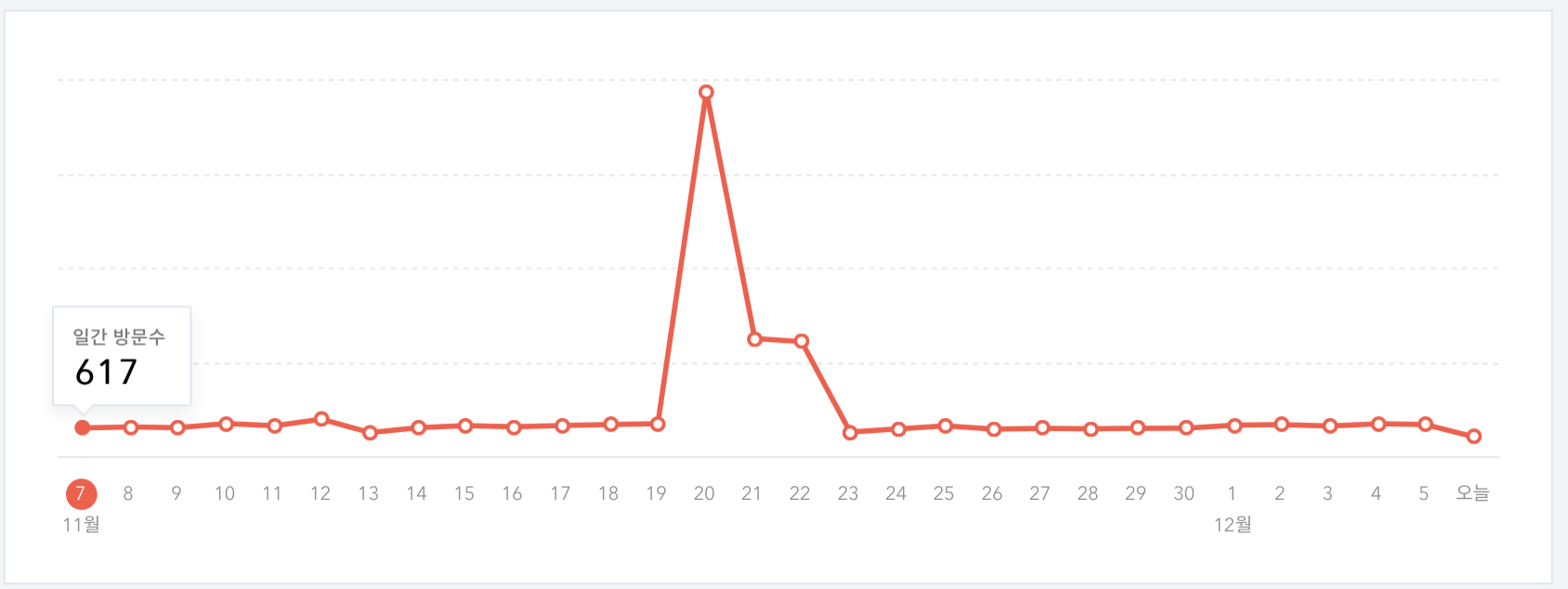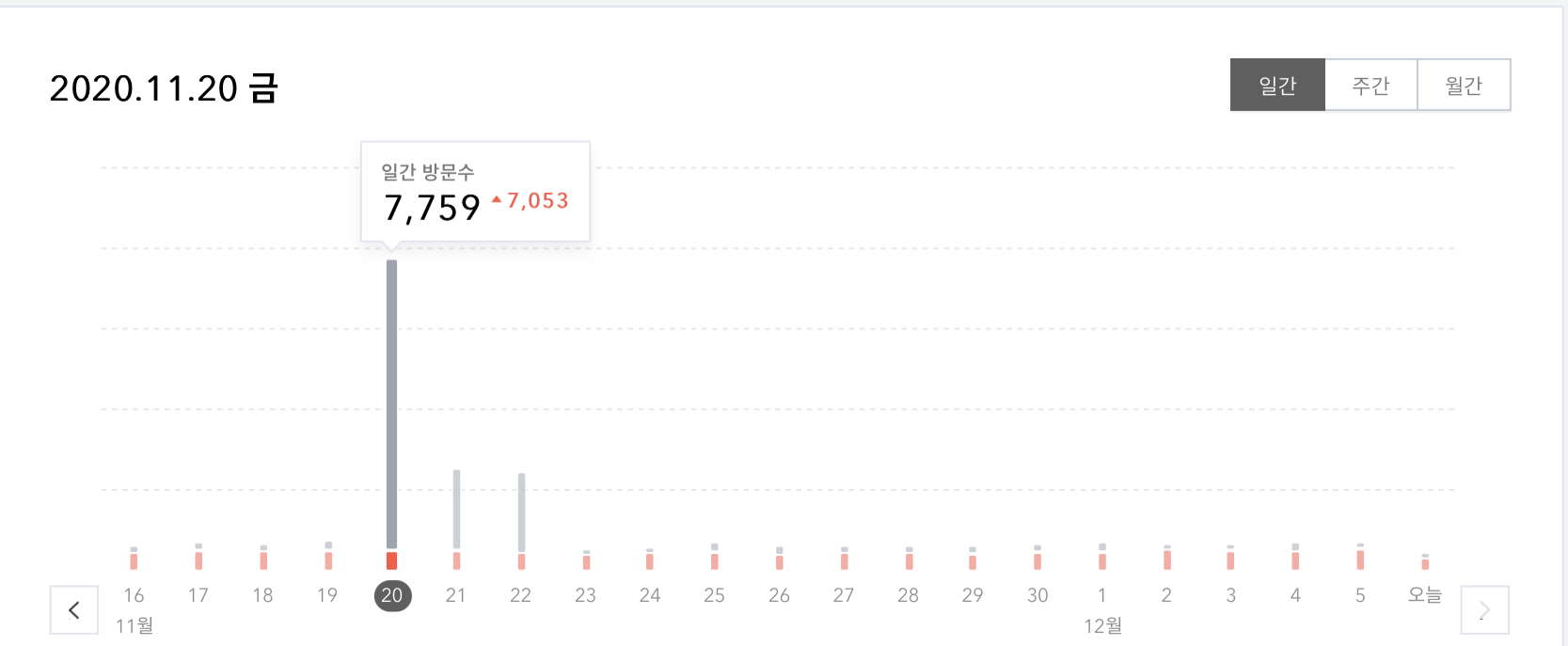 2019년 10월달의 방문자 수는 7,508명으로 11월 20일의 방문자 수 인 7,759명으로 가장 비슷한 방문자 수 였기에 한번 가지고 와봤습니다.