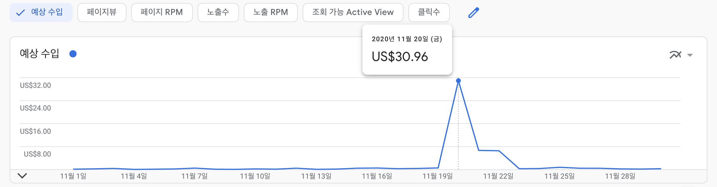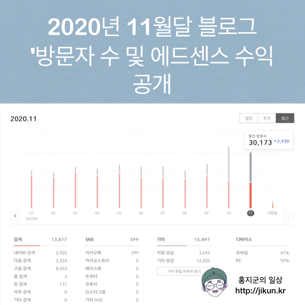2020년 11월 달 블로그 "방문자 수 및 에드센스 수익 공개"