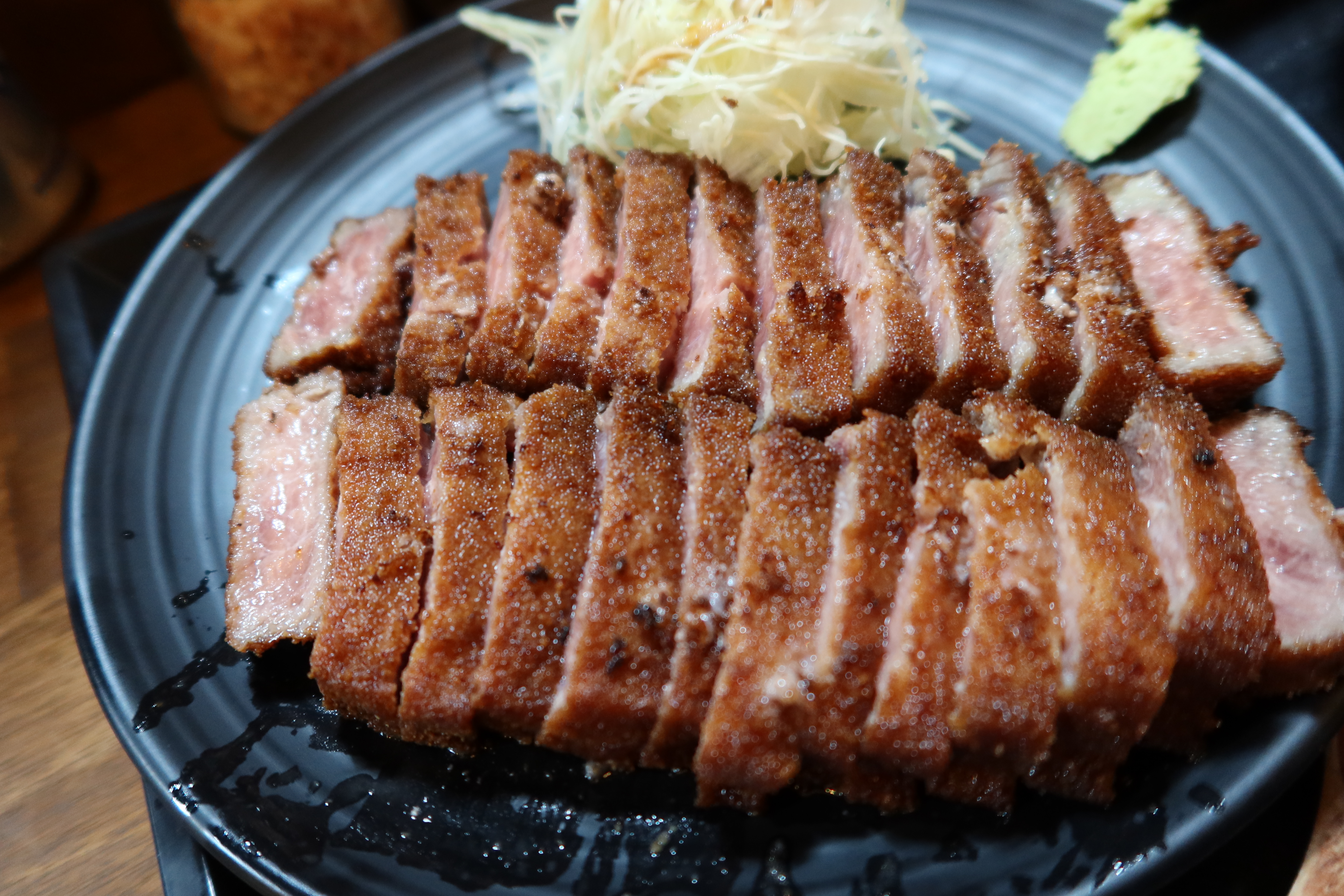 주문하고 조금 기다려 나온 규카츠 점보정식! 밥, 장국, 김치, 2종류의 소스와 점보 규카츠 셀러드, 와사비! 반찬과 밥은 추가로 더 달라고하시면 됩니다.