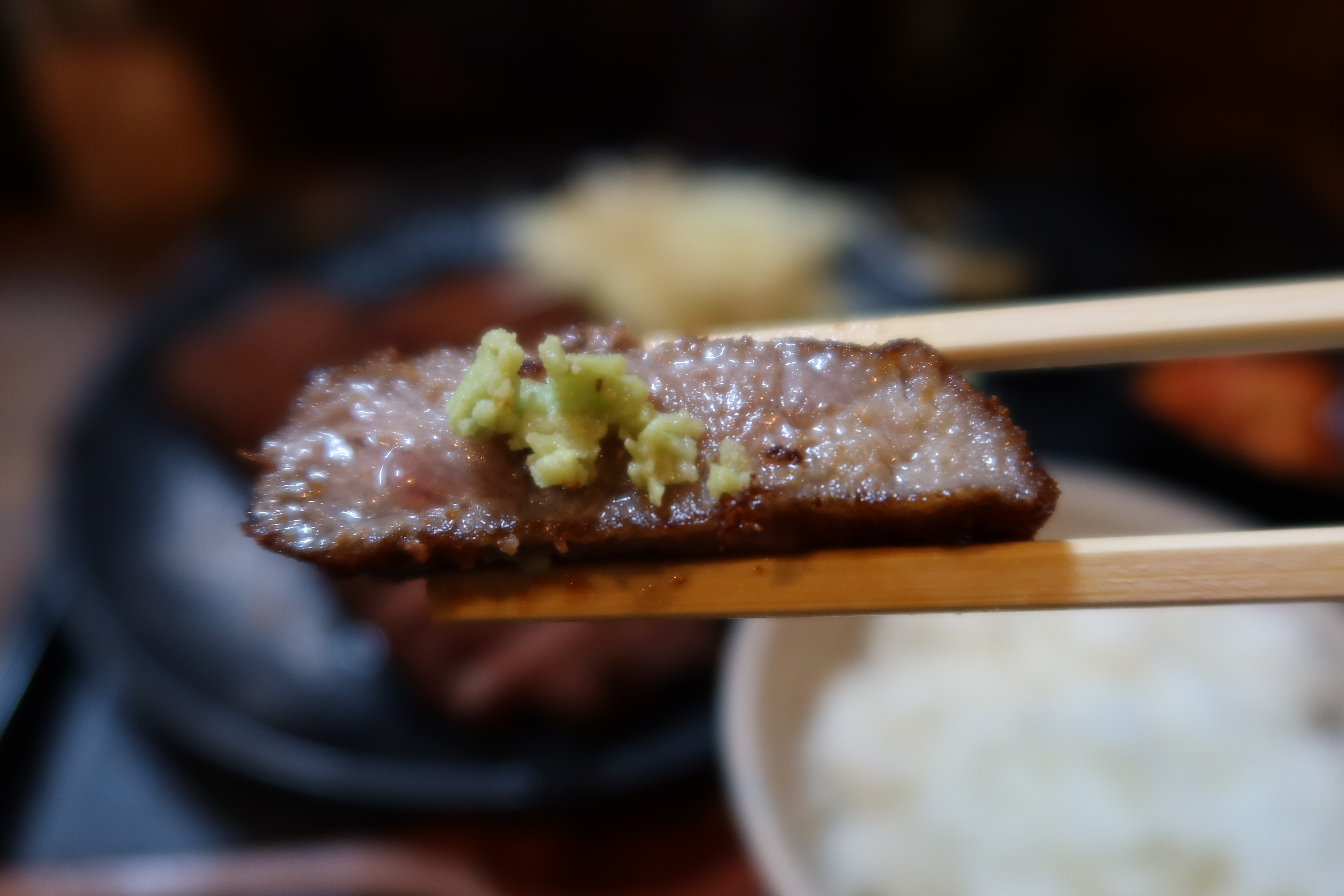 규카츠를 화로위에 올려 살짝 익으면 잘 익은 규카츠위에 와사비도 살짝 올려서 먹어주면 끝!!