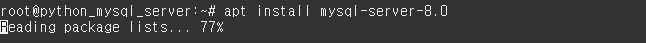 위에서 apt-cache로 확인한 mysql-server중에서 설치에 필요한 것은 MySQL database server binaries and system database setup 이기 때문에 앞쪽에 있는 mysql-server-8.0을 apt install 명령어를 통해서 설치를 해주시면 됩니다. 중간에 나오는 continue? 에서도 역시 동의(y)를 해주시면 됩니다.