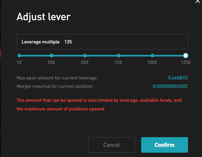 비트겟 거래소에서는 1배 ~ 125배까지 배수의 배팅을 지원하고 있어서 원하는 배율을 선택해서 투자를 할 수 있는데