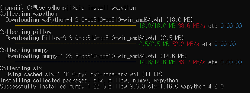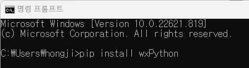 명령 프롬프트에서 "pip install wxPython" 명령으로 설치