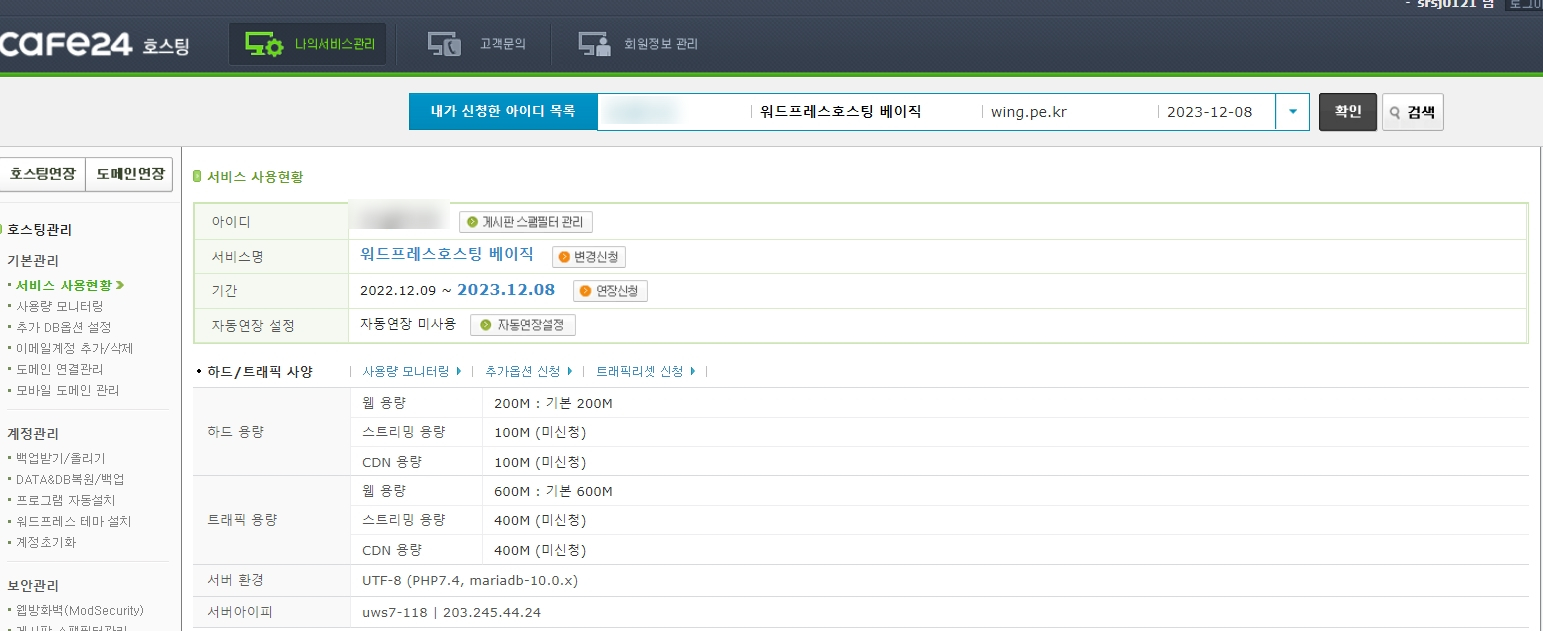 다만 5,500원의 호스팅 비용 이후로는 더 저렴한 가격에 호스팅을 하는 업체도 많이 있어서 이후 필요한 상황이 온다면 따로 생각을 해볼 필요가 있겠네요.