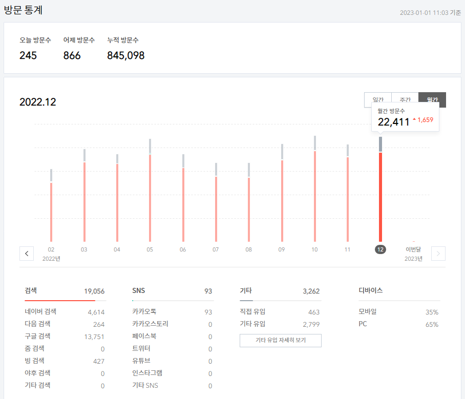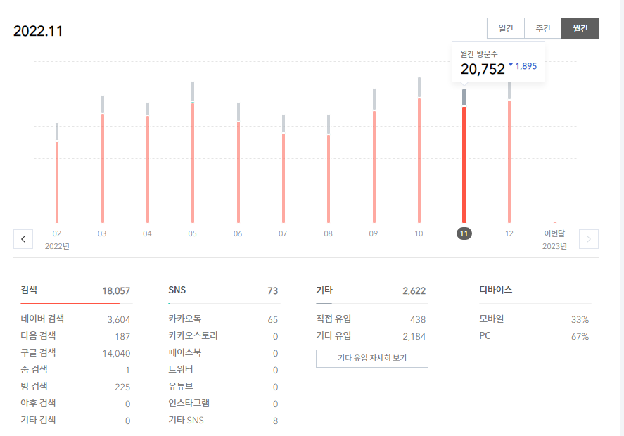 11월과 12월에는 새로 작성한 글이 있더라도 큰 차이는 없었지만