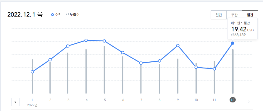 2022년 12월 블로그 "방문자 및 수익" 정리