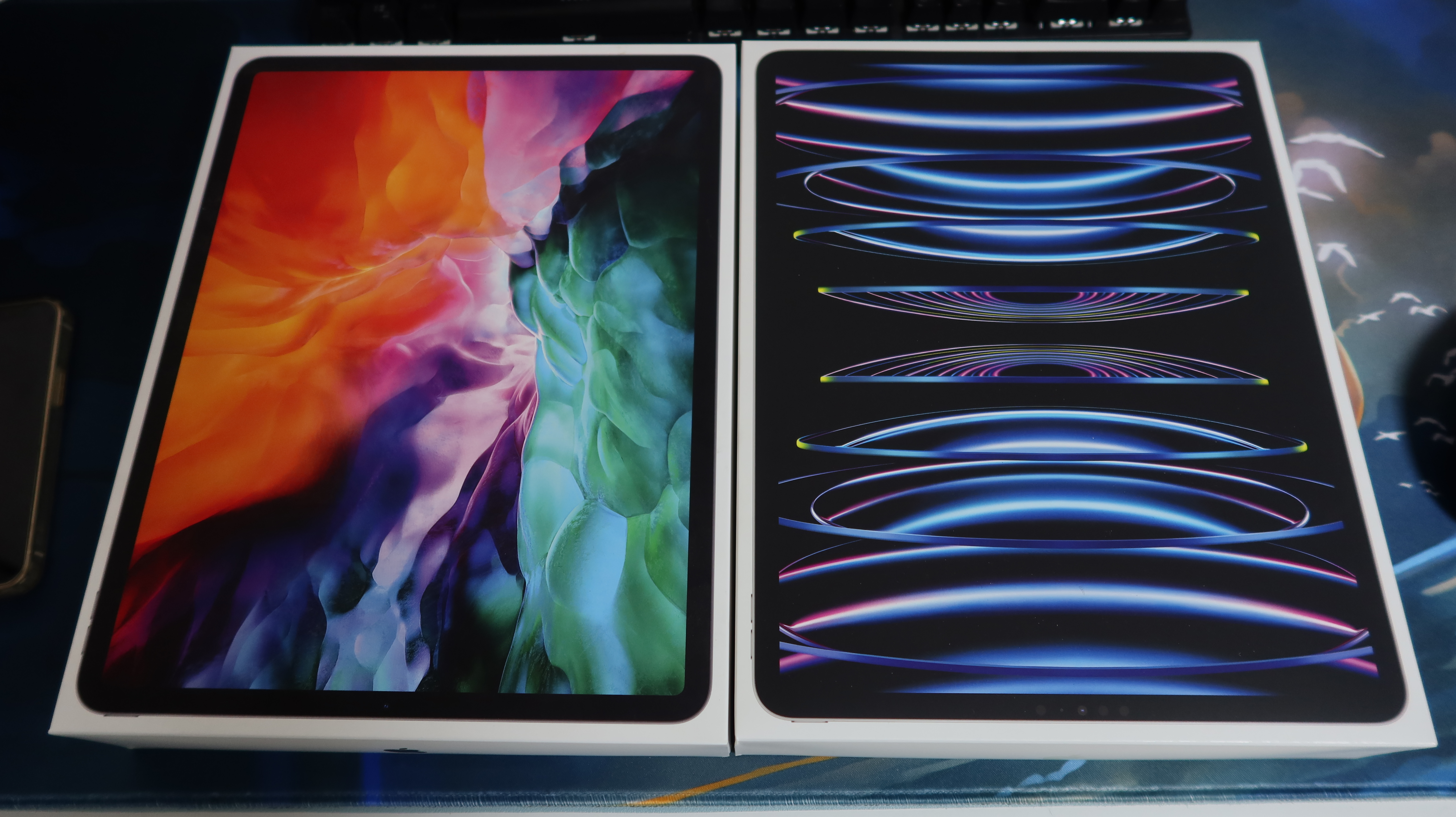 사진에서 왼쪽은 이전에 사용하던 아이패드 프로 4세대 오른쪽이 새로 구매한 아이패드 프로 6세대 박스 사진이에요.