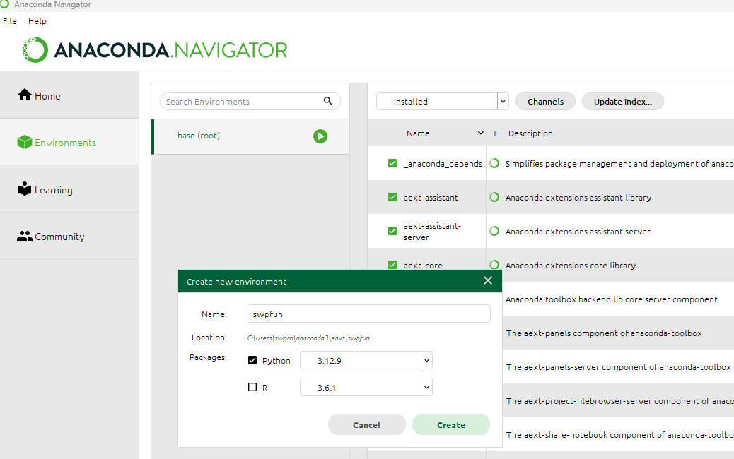 ANACONDA3 를 사용했습니다. 가상환경에서 Python 버전과 패키지를 따로따로 관리할 수 있도록 하는 프로그램으로 다양한 버전의 Python을 사용하거나 가상환경 내에서 패키지를 설치해 적용할 수 있는 프로그램입니다. ANACODA3를 이용해서 Python 버전 3.12.9 버전을 활용할 생각입니다.