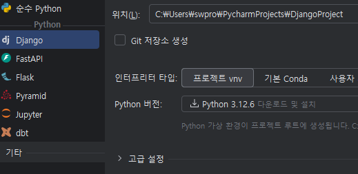 PyCharm은 무료 버전인 Community 버전과 유료 버전인 Professional 버전 두가지가 있는데 무료 버전을 사용하더라도 Django 개발을 못하는 것은 아니지만 Pro 버전에서는 Django 프로젝트를 만들기 위한 기본 세팅이 되어있고 PyCharm에서 서버연결과 테스트를 진행할 수 있기 때문에 pro 버전으로 개발을 시작했습니다.