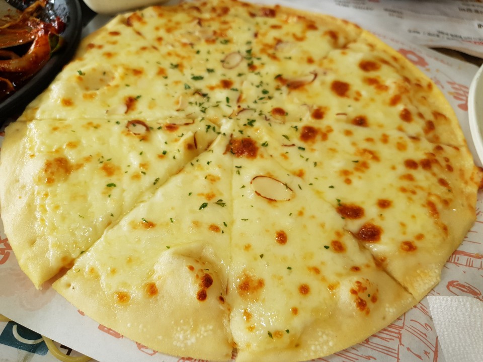 2인이상 세트메뉴를 주문하면 화덕 고르곤졸라피자가 서비스로 나오는데요. 여기에 치즈도 듬뿍 들어가있어서 메인 메뉴 이외에도 맛있게 먹을 수 있어요.